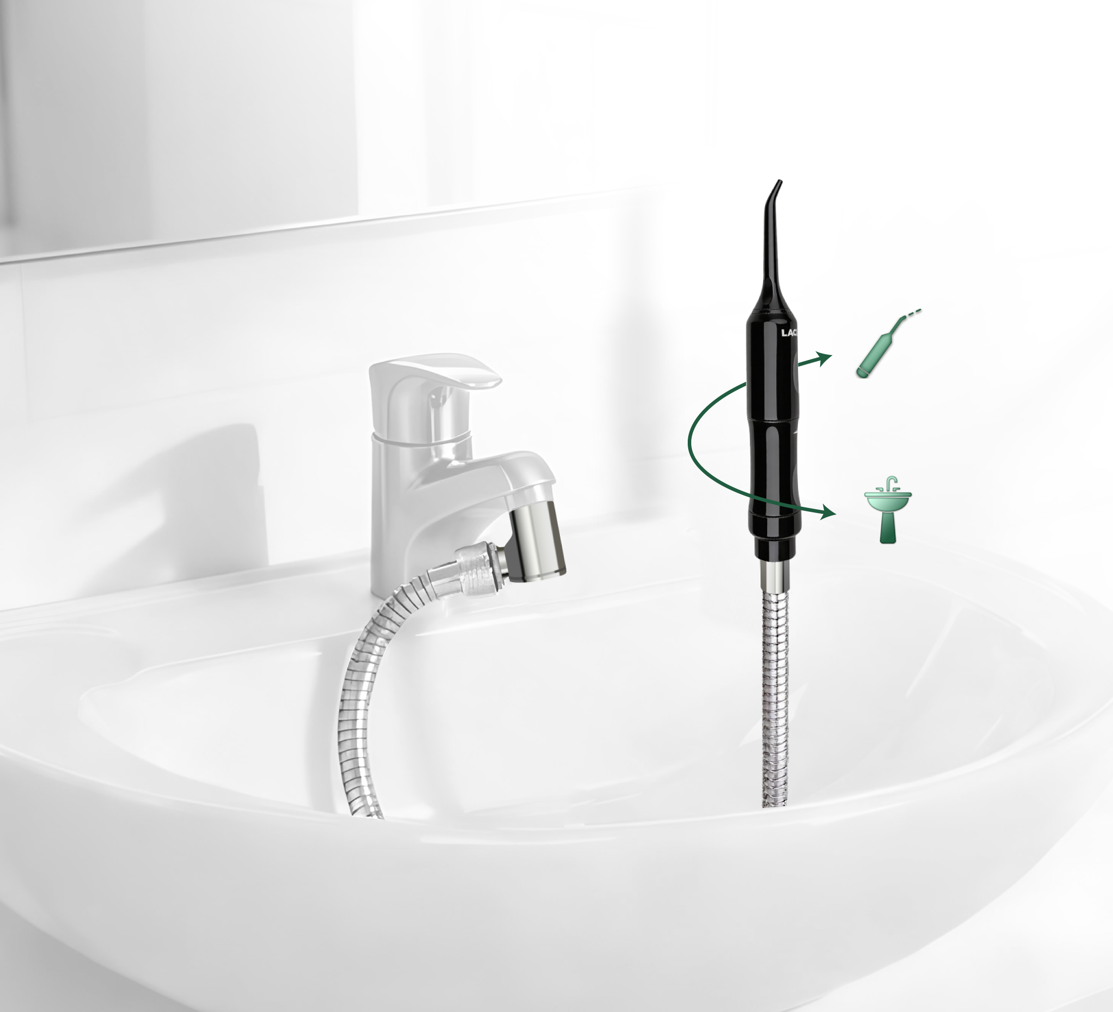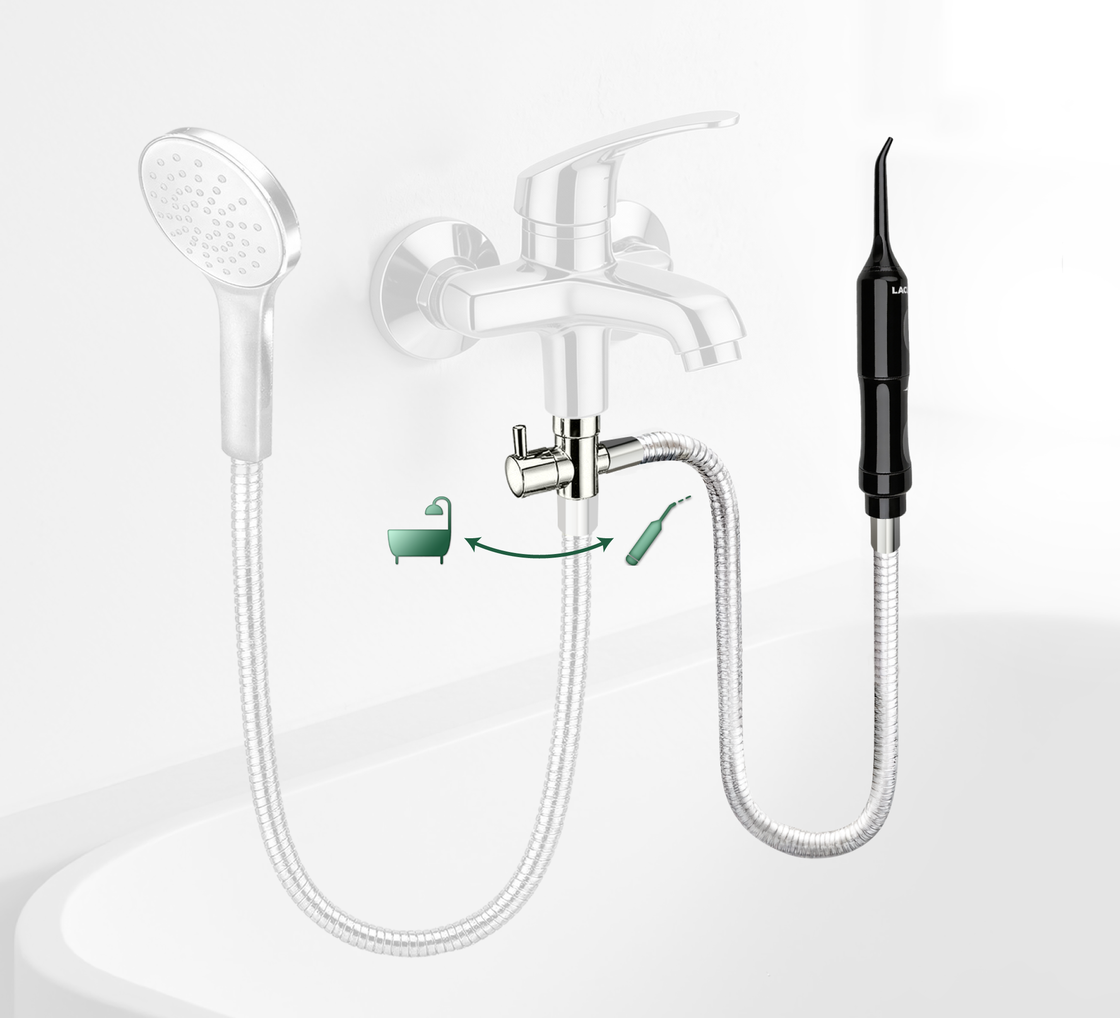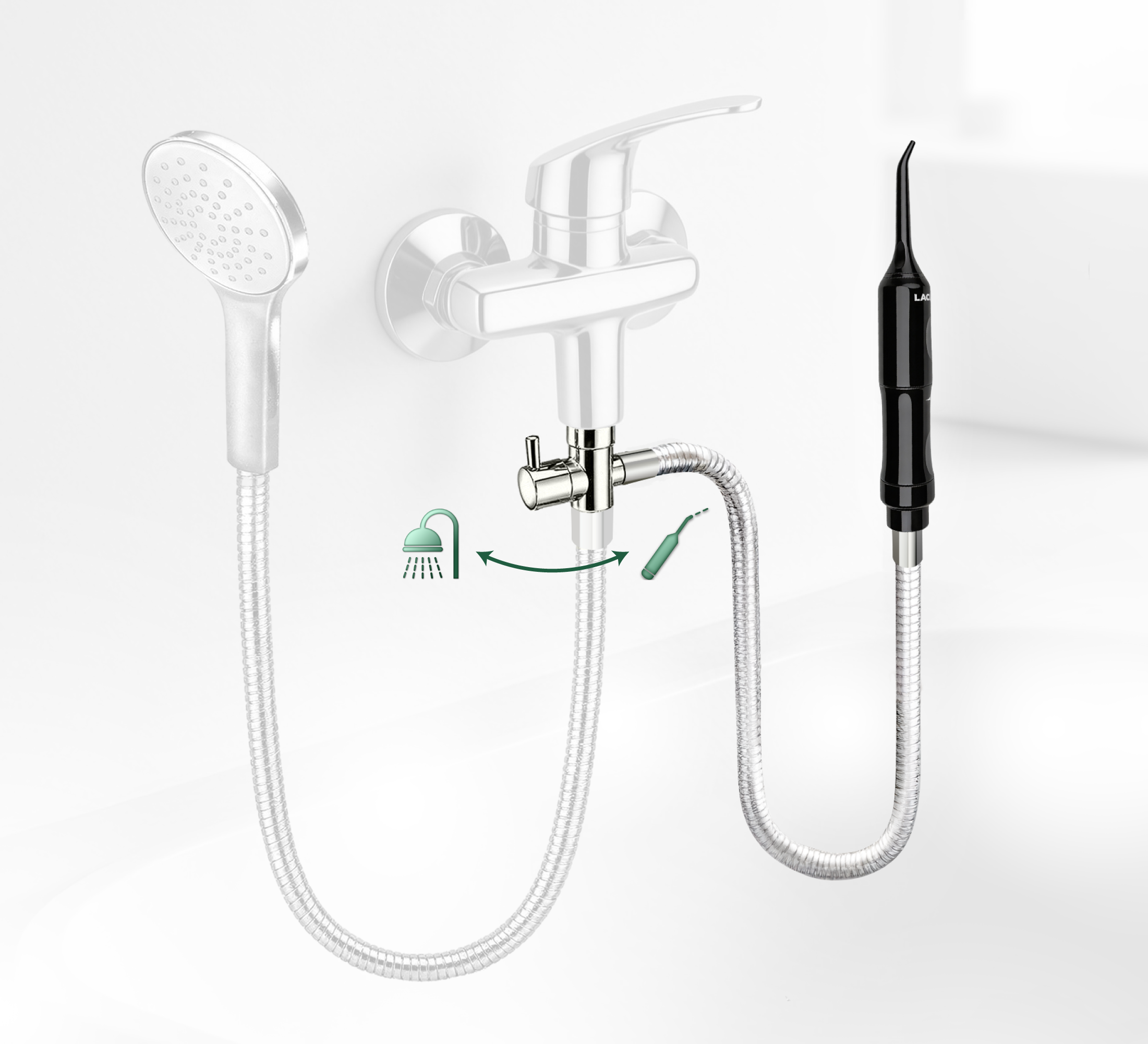Beznabíjecí a beznádržková ústní sprcha Laclever® Vám zaručí bezhlučnou péči o Váš úsměv z pohodlí domova.
