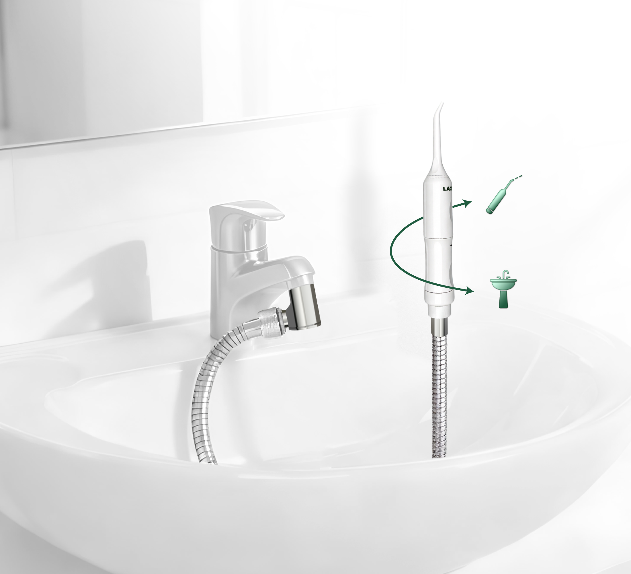 Beznabíjecí a beznádržková ústní sprcha Laclever® Vám zaručí bezhlučnou péči o Váš úsměv z pohodlí domova.